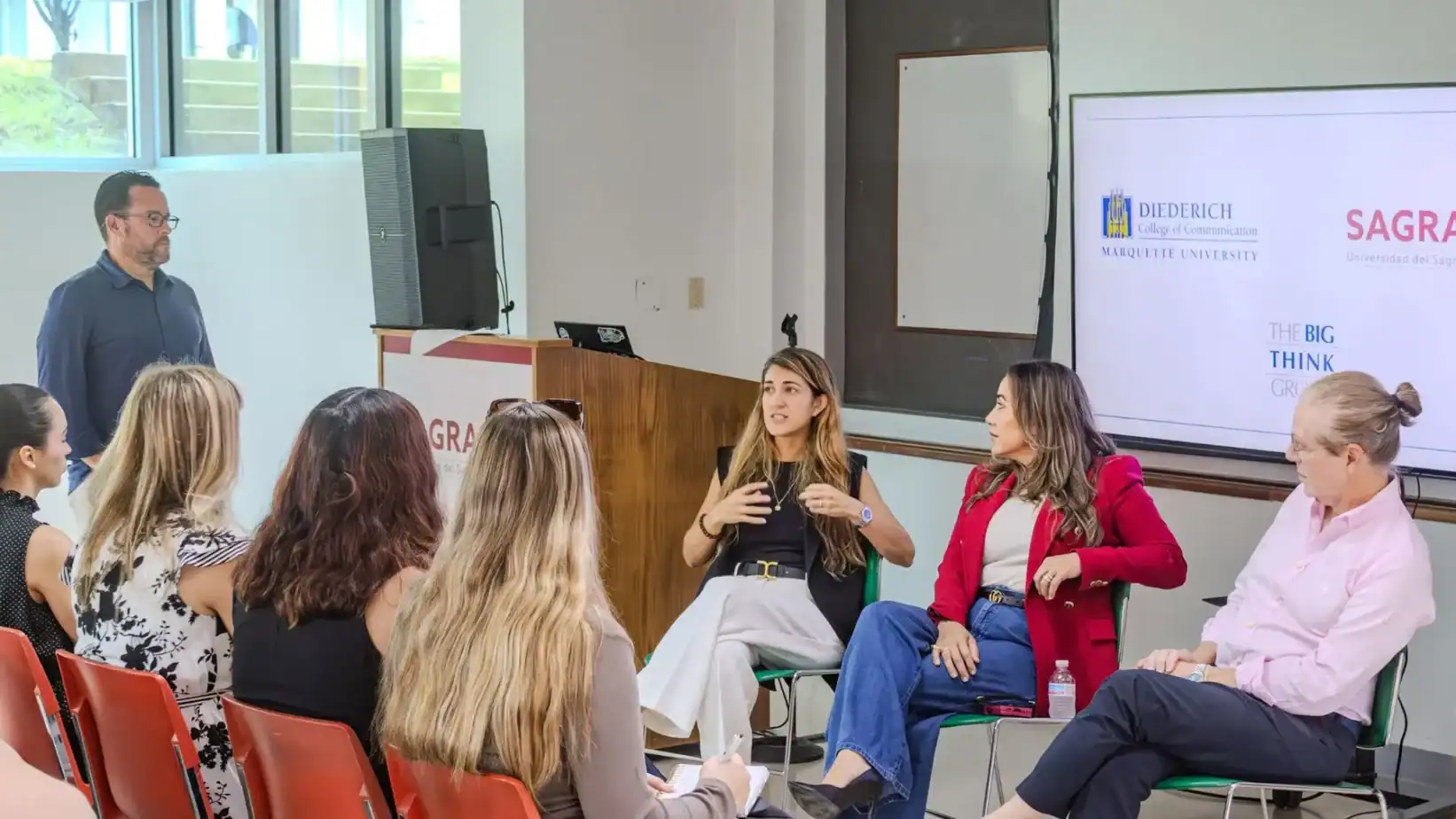La actividad incluyó un conversatorio con: Isabel Rullán, cofundadora y directora ejecutiva de ComPRometidos; Yalixa Rivera, directora general de GFR Media; y Guillermo Paz, presidente de Populicom. Además, tanto estudiantes visitantes como sagradeños participaron en presentaciones lideradas por Miguel Rojas, gerente de mercadeo en T-Mobile Puerto Rico, y Juan Carlos Ampie, profesor de Periodismo Multimedios en Marquette University.